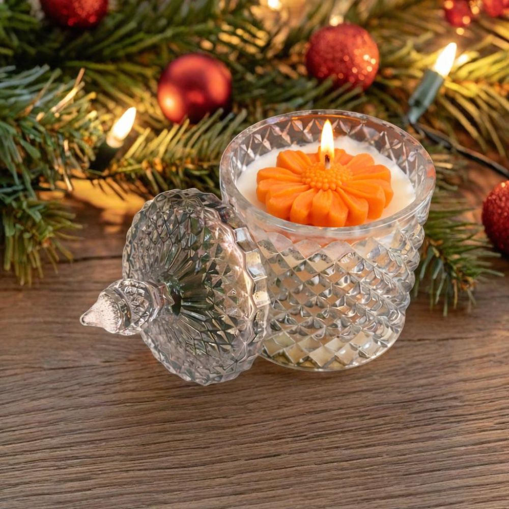 The 150 g big crystal jar candle makes a bold festive statement with extended burn time and radiant glow, perfect for Christmas décor and premium gifting.