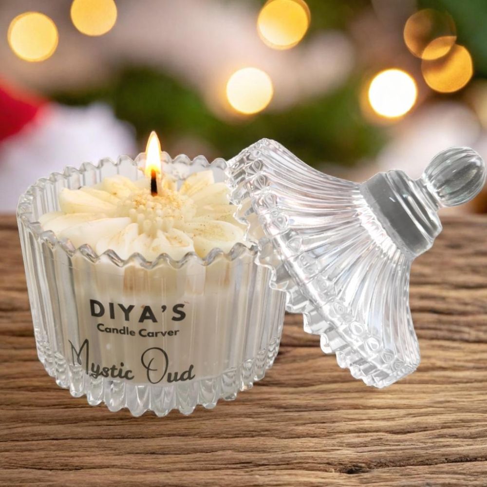 The 50 g small crystal jar candle reflects warm festive light while adding refined elegance to smaller spaces. Perfect for desks, bedside tables, and Christmas gifting.